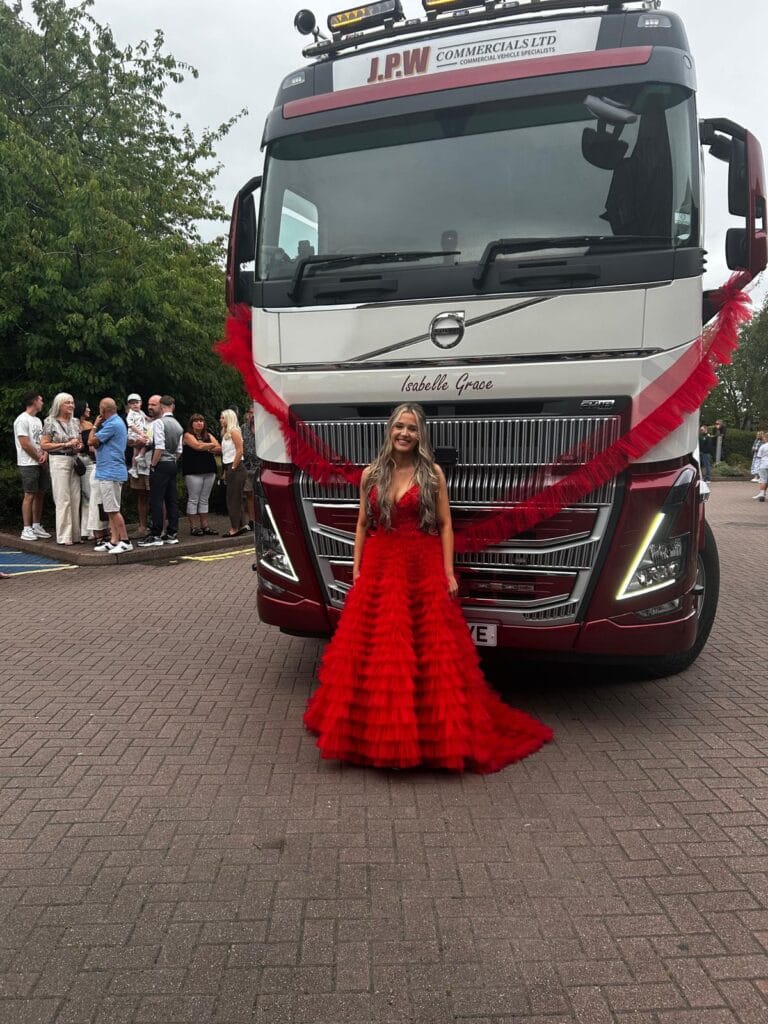 FH16 BYE was given a truly special assignment: transporting our Director’s daughter, Izzy Grace, to her school prom. This wasn’t just any journey—it was a proud moment, as FH16 BYE carries Izzy’s name boldly on its front grill, a tribute to her and this unforgettable occasion.